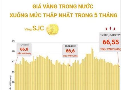 [Infographics] Giá vàng trong nước xuống mức thấp nhất trong 5 tháng