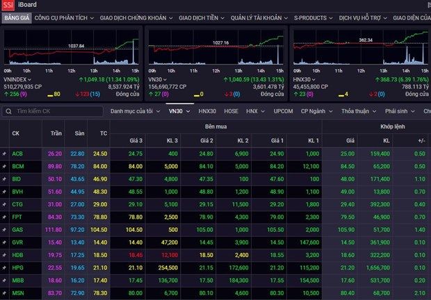 Chốt phiên giao dịch ngày 8/3, VN-Index tăng tăng 11,34 điểm lên 1.0491,18 điểm, khối lượng giao dịch đạt hơn 510,2 triệu đơn vị, tương ứng gần 8.538 tỷ đồng. www