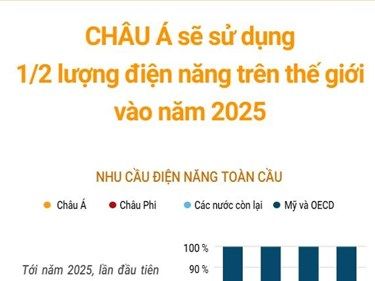 Tới năm 2025, lần đầu tiên trong lịch sử, châu Á sẽ chiếm 1/2 lượng điện tiêu thụ của thế giới, theo dự báo của Cơ quan Năng lượng Quốc tế (IEA).