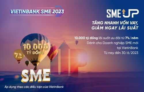 VietinBank dành 10.000 tỷ đồng với lãi suất ưu đãi chỉ từ 7%/năm nhằm hỗ trợ doanh nghiệp vừa và nhỏ mới phát triển hoạt động kinh doanh trong 6 tháng đầu năm 2023.