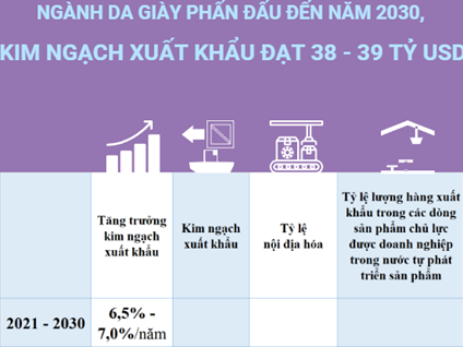 Theo Chiến lược phát triển ngành dệt may và da giày Việt Nam, Việt Nam phấn đấu kim ngạch xuất khẩu ngành da giày đến năm 2025 đạt 27-28 tỷ USD và đạt 38-39 tỷ USD vào năm 2030.