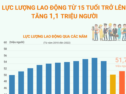 Theo Tổng cục thống kê, năm 2022, lực lượng lao động từ 15 tuổi trở lên là 51,7 triệu người, tăng 1,1 triệu người so với năm 2021.