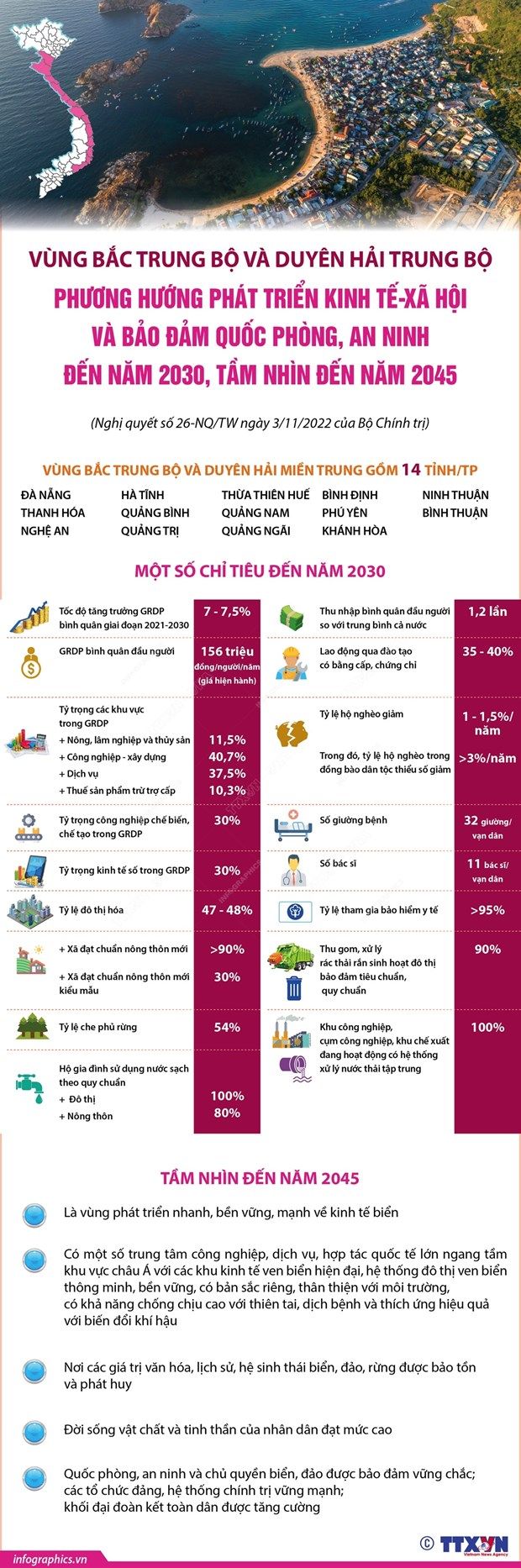 Tầm nhìn đến năm 2045, Bắc Trung Bộ và duyên hải Trung Bộ là vùng phát triển nhanh, bền vững, mạnh về kinh tế biển có một số trung tâm công nghiệp, dịch vụ...
