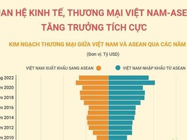 Trong 9 tháng năm 2022, kim ngạch thương mại hai chiều Việt Nam-ASEAN ước đạt 61,68 tỷ USD, trong đó xuất khẩu đạt 26,04 tỷ USD, nhập khẩu đạt 35,64 tỷ USD.