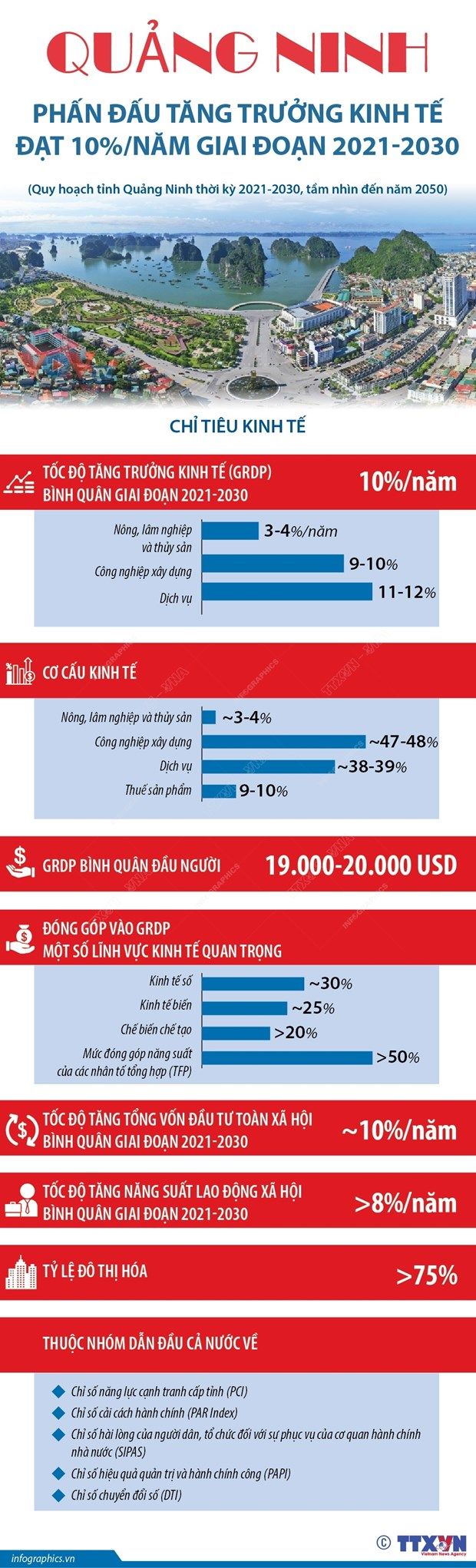[Infographics] Quảng Ninh phấn đấu tăng trưởng kinh tế đạt 10% mỗi năm