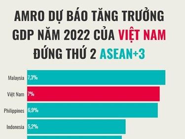 Văn phòng Nghiên cứu kinh tế vĩ mô ASEAN+3 (AMRO) đưa ra dự báo kinh tế Việt Nam sẽ tăng trưởng 7% trong năm nay và đứng thứ 2 trong khu vực sau Malaysia.