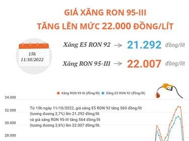 [Infographics] Giá xăng RON 95-III tăng lên mức 22.000 đồng mỗi lít
