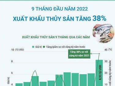 Chín tháng của năm 2022, xuất khẩu thủy sản của Việt Nam đạt trên 8,5 tỷ USD, tăng 38% so với cùng kỳ năm 2021; trong đó, xuất khẩu tôm mang về gần 3,4 tỷ USD, tăng 23%; cá tra thu về gần 2 tỷ USD.