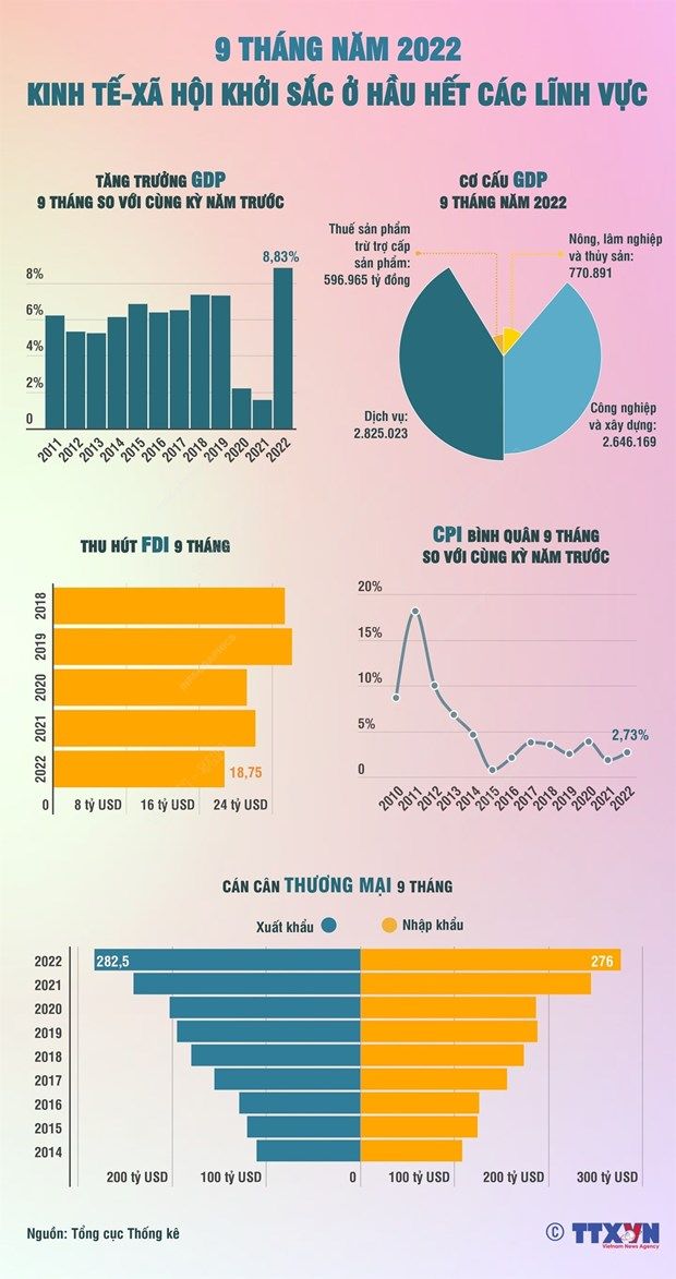 Chín tháng năm 2022: Kinh tế-xã hội khởi sắc ở hầu hết các lĩnh vực