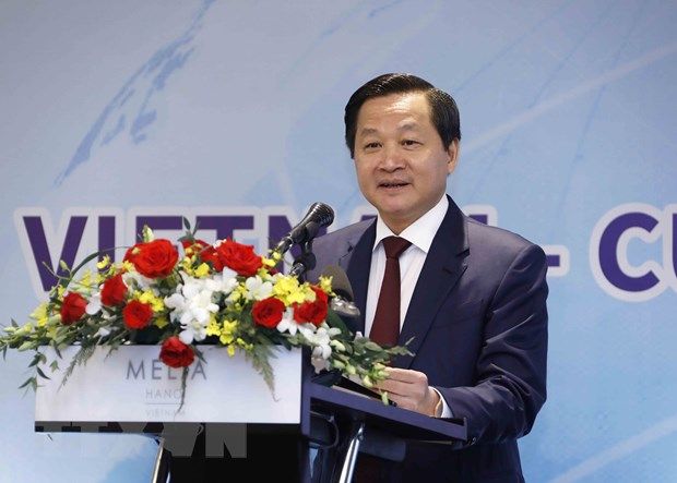 Trong chương trình thăm hữu nghị chính thức Việt Nam, sáng 30/9, tại Hà Nội, Thủ tướng nước Cộng hòa Cuba Manuel Marrero Cruz dự và phát biểu tại Diễn đàn xúc tiến kinh doanh Việt Nam-Cuba.