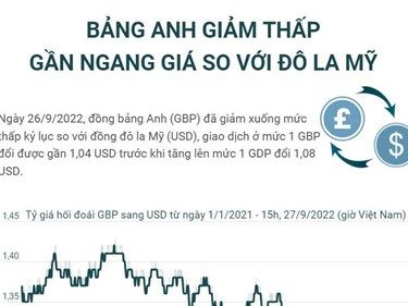 Ngày 26/9, đồng bảng Anh (GBP) đã giảm xuống mức thấp kỷ lục so với đồng đôla Mỹ (USD), giao dịch ở mức 1 GBP đổi được gần 1,04 USD trước khi tăng lên mức 1 GDP đổi 1,08 USD vào ngày 27/9.