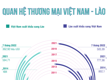 7 tháng đầu năm 2022, kim ngạch thương mại song phương đạt gần 950 triệu USD, trong đó, xuất khẩu của Việt Nam sang Lào đạt gần 363 triệu USD.