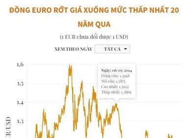 [Infographics] Đồng euro rớt giá xuống mức thấp nhất 20 năm qua