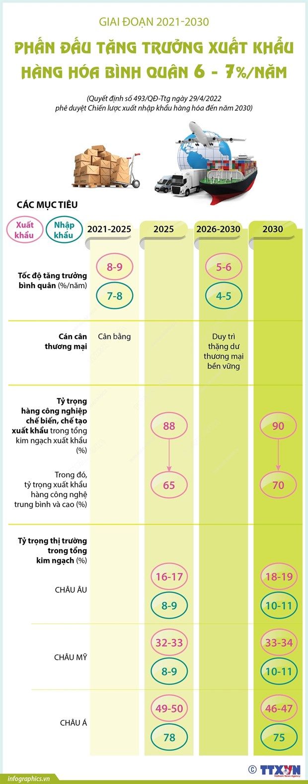Chiến lược xuất nhập khẩu hàng hóa đến năm 2030 đặt ra các mục tiêu xuất nhập khẩu phát triển bền vững với cơ cấu cân đối, hài hòa, phát huy lợi thế cạnh tranh, phát triển thương hiệu hàng Việt Nam.