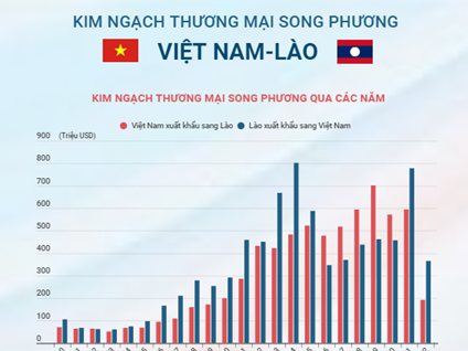 Trong những năm gần đây, kim ngạch thương mại song phương giữa Việt Nam và Lào có sự tăng trưởng ổn định, cán cân xuất khẩu và nhập khẩu tương đối cân bằng.