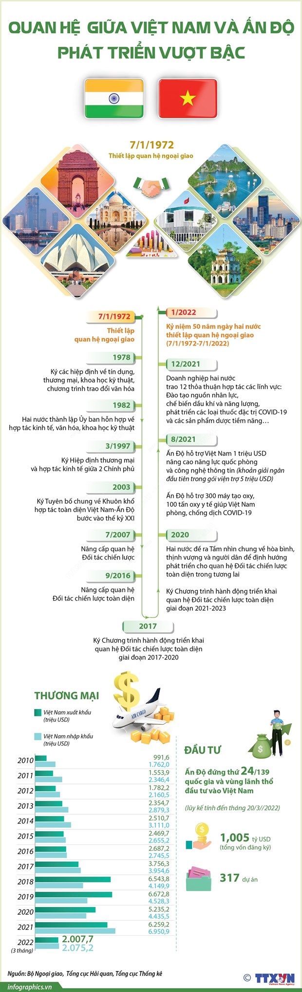 [Infographics] Quan hệ giữa Việt Nam và Ấn Độ phát triển vượt bậc