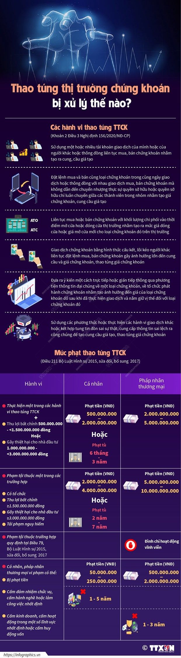 [Infographics] Thao túng thị trường chứng khoán bị xử lý thế nào?