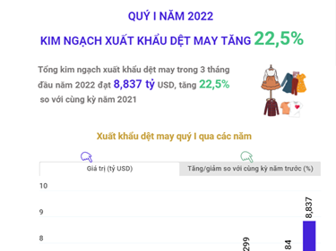 [Infographics] Quý 1 năm 2022 kim ngạch xuất khẩu dệt may tăng 22,5%