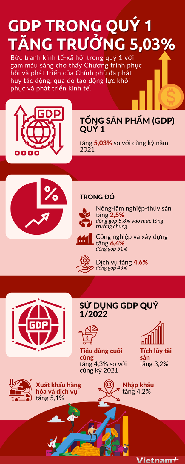 [Infographics] GDP trong quý 1 tăng trưởng 5,03% so với cùng kỳ