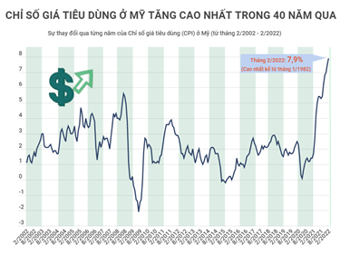 [Infographics] Chỉ số giá tiêu dùng Mỹ tăng cao nhất trong 40 năm qua