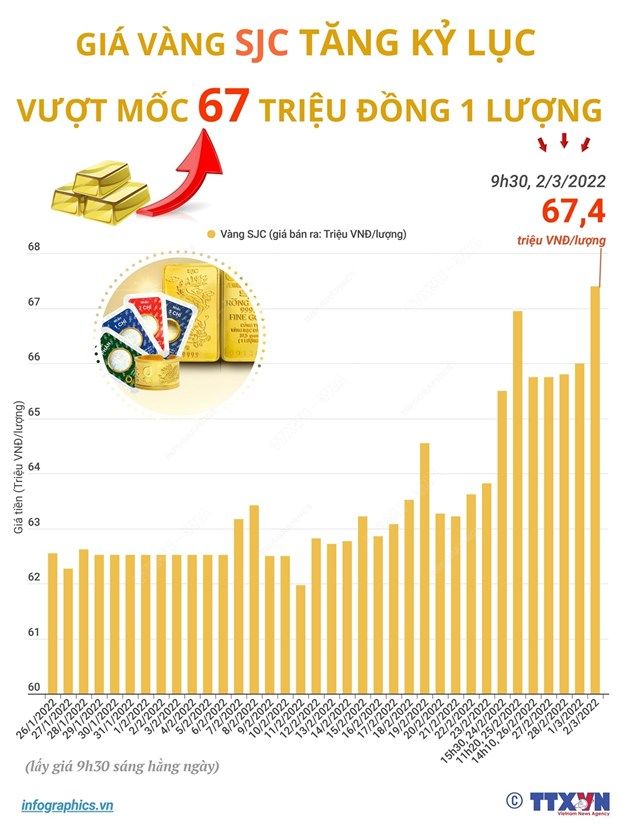 [Infographics] Giá vàng SJC tăng kỷ lục vượt mốc 67 triệu đồng