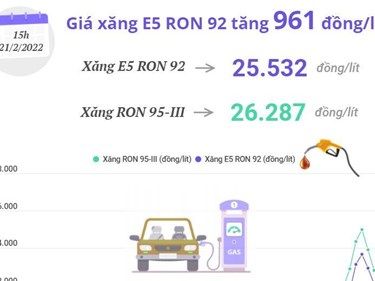 [Infographics] Giá xăng E5 RON 92 tăng 961 đồng mỗi lít