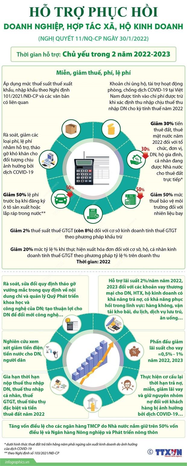 [Infographics] Hỗ trợ phục hồi doanh nghiệp, hợp tác xã, hộ kinh doanh