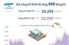 [Infographics] Giá xăng E5 RON 92 tăng thêm 468 đồng mỗi lít