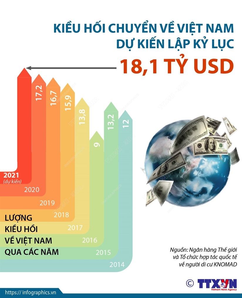 [Infographics] Kiều hối về Việt Nam dự kiến lập kỷ lục 18,1 tỷ USD