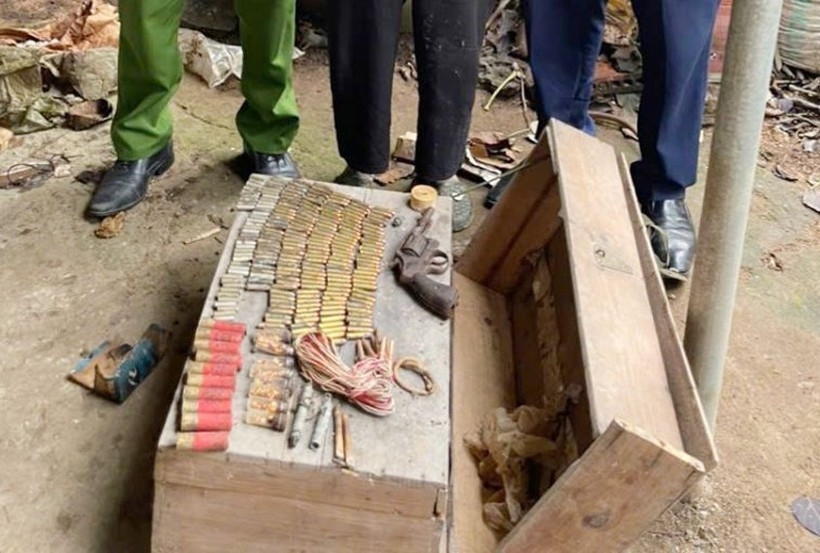 Bà Phạm Thị Tiến (sinh năm 1950, trú tại tổ dân phố Nhẫm Chợ, phường Vân Hà) sau khi đi tập thể dục về nhà thì phát hiện một hòm đựng đồ bên trong có chứa nhiều súng, lựu đạn, kíp nổ và đạn các loại.