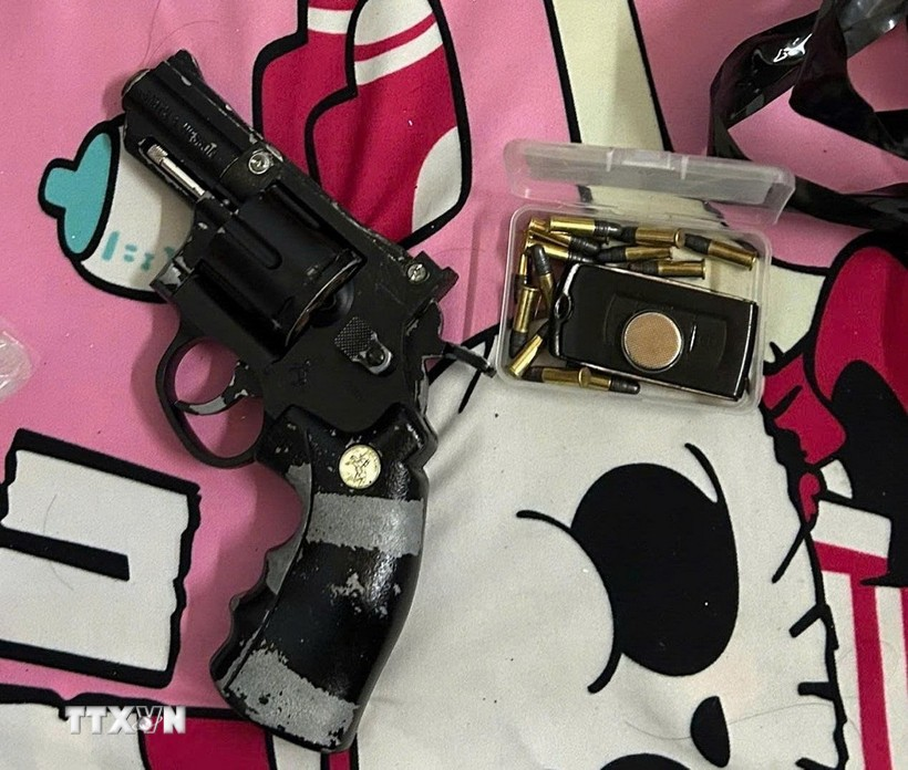 Trong lúc truy bắt đối tượng trốn thi hành án Đ.A.T, Công an phát hiện, bắt giữ nhóm đối tượng tàng trữ trái phép vũ khí quân dụng, thu giữ 1 súng ngắn cùng 14 viên đạn và hơn 1,7g ma túy đá.