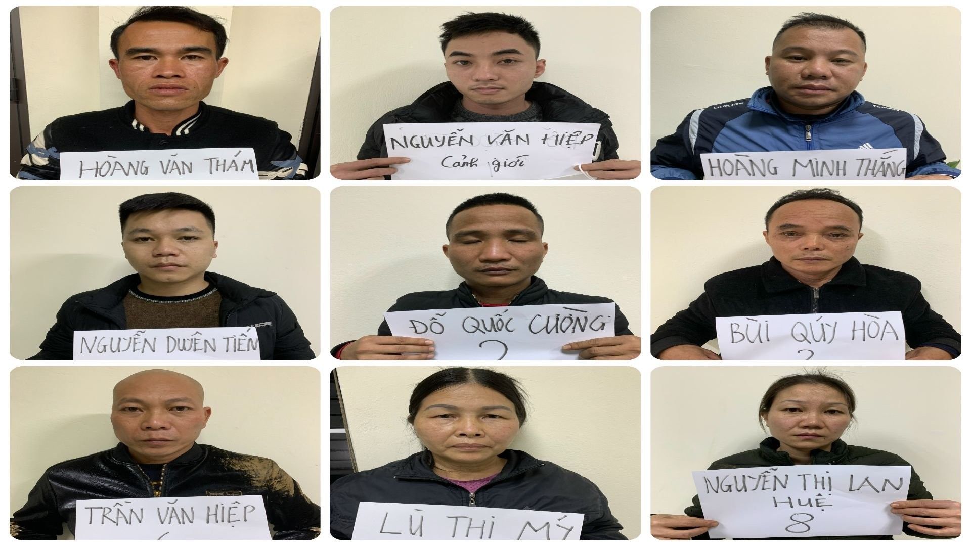 Các đối tượng đã làm lán trại trên đỉnh đồi cao để đánh bạc bằng hình thức xóc đĩa, cảnh giới bằng bộ đàm.