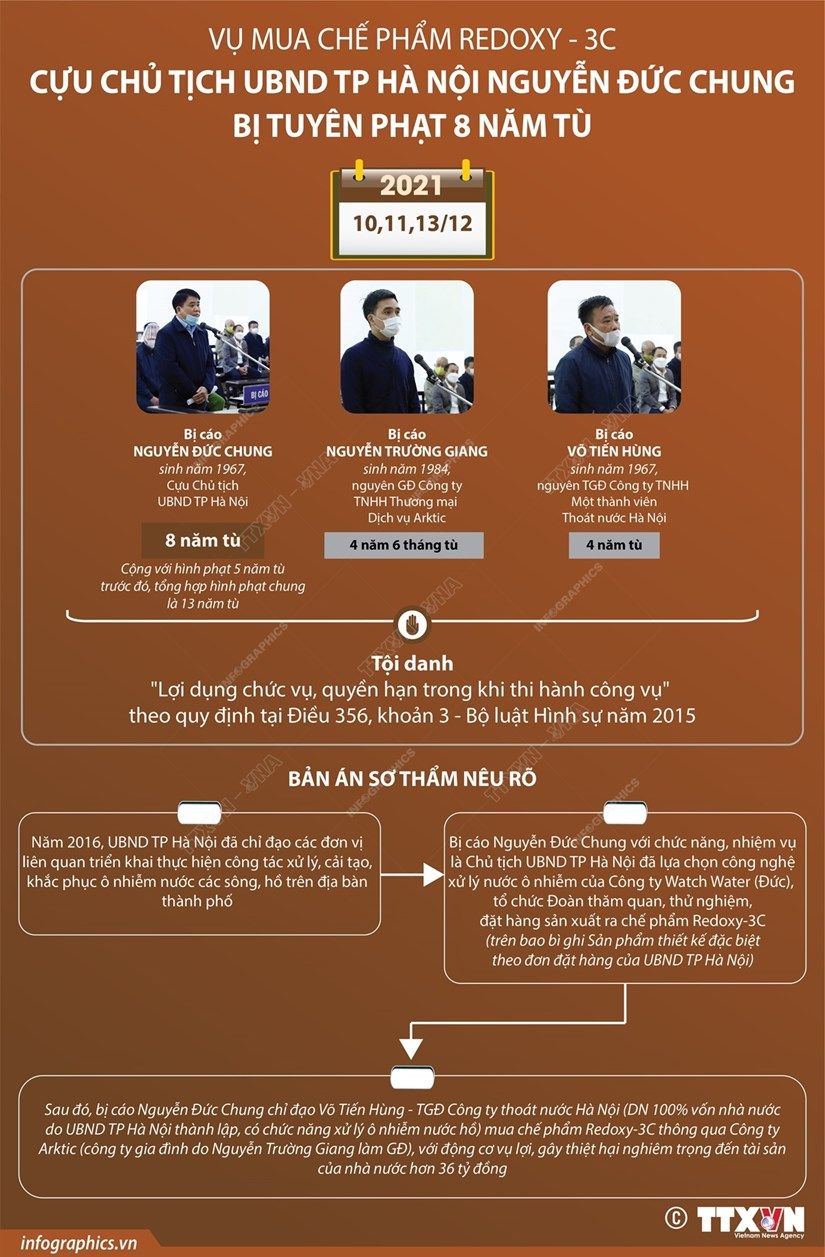 Tòa án tuyên án phạt cựu Chủ tịch Ủy ban Nhân dân thành phố Hà Nội Nguyễn Đức Chung và 2 đồng phạm trong vụ mua chế phẩm Redoxy-3C của Cộng hòa Liên bang Đức.