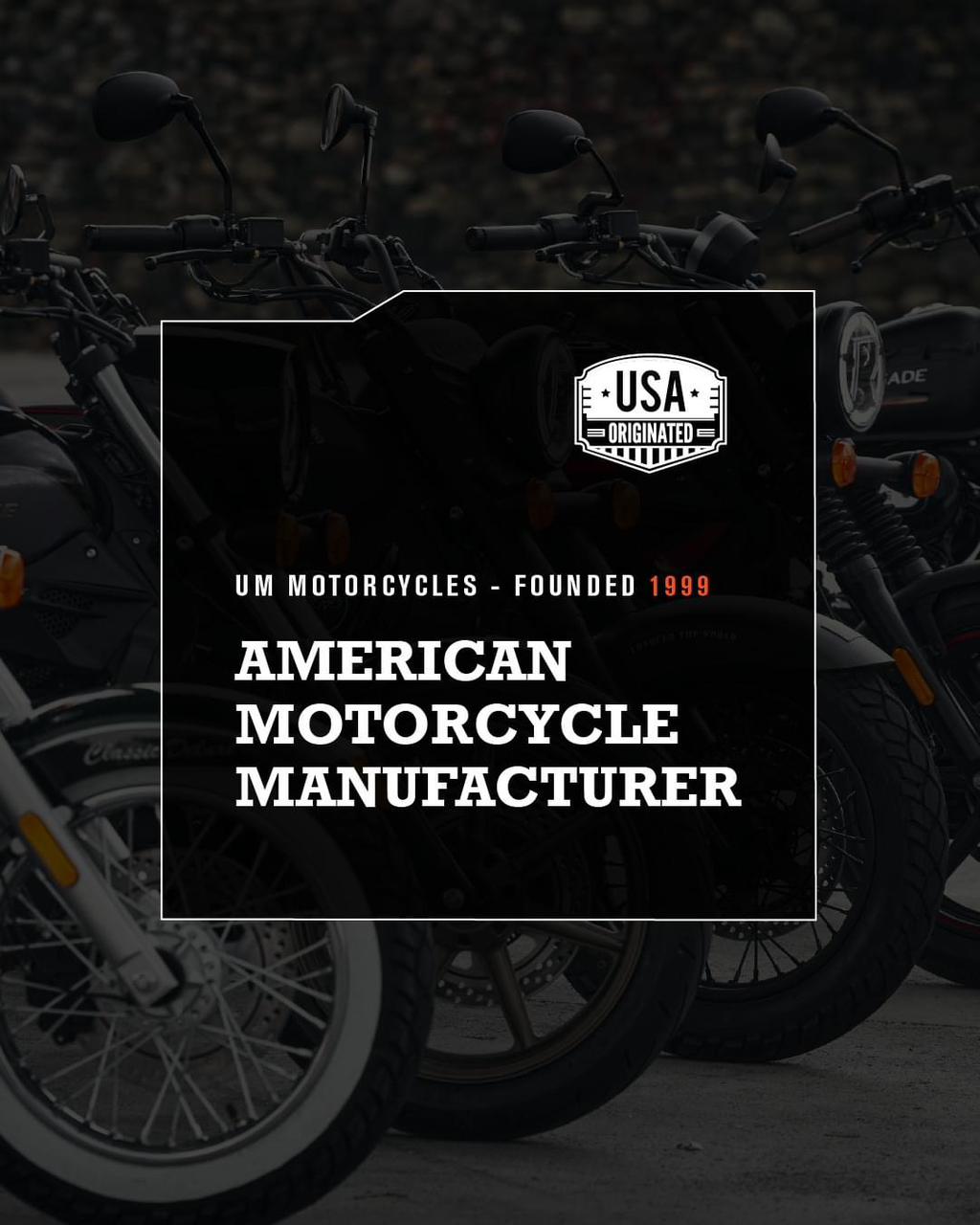 Trụ sở chính tại Miami, Florida, UM® Motorcycles đã hiện diện tại hơn 40 quốc gia và xây dựng một mạng lưới phân phối rộng khắp với hơn 2.000 đại lý trên toàn cầu. Là một thương hiệu mang đậm giá trị cốt lõi của Mỹ – tự do, đột phá và hướng đến sự hoàn hảo, UM® Motorcycles khơi dậy niềm đam mê của những người yêu thích mô tô trên toàn thế giới qua những chiếc xe khẳng định phong cách cá nhân, kết hợp với công nghệ tiên tiến hàng đầu.