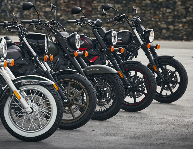 Renegade Sport 125cc: là một chiếc Sport Cruiser nhẹ với vẻ ngoài hấp dẫn và chi tiết tinh tế, được thiết kế để mang lại trải nghiệm lái xe dễ chịu. Được trang bị động cơ xi-lanh đơn, làm mát bằng không khí, 4 thì 125cc, mẫu xe này có tay lái kiểu chopper, yên xe rộng và thấp thoải mái, cùng nhiều tính năng khác khiến mẫu xe này rất dễ lái và phù hợp với mọi người, không phân biệt giới tính, tuổi tác hay chiều cao. Đây là lựa chọn lý tưởng cho những tay lái muốn bắt đầu bước vào thế giới hấp dẫn của phong cách cruiser.